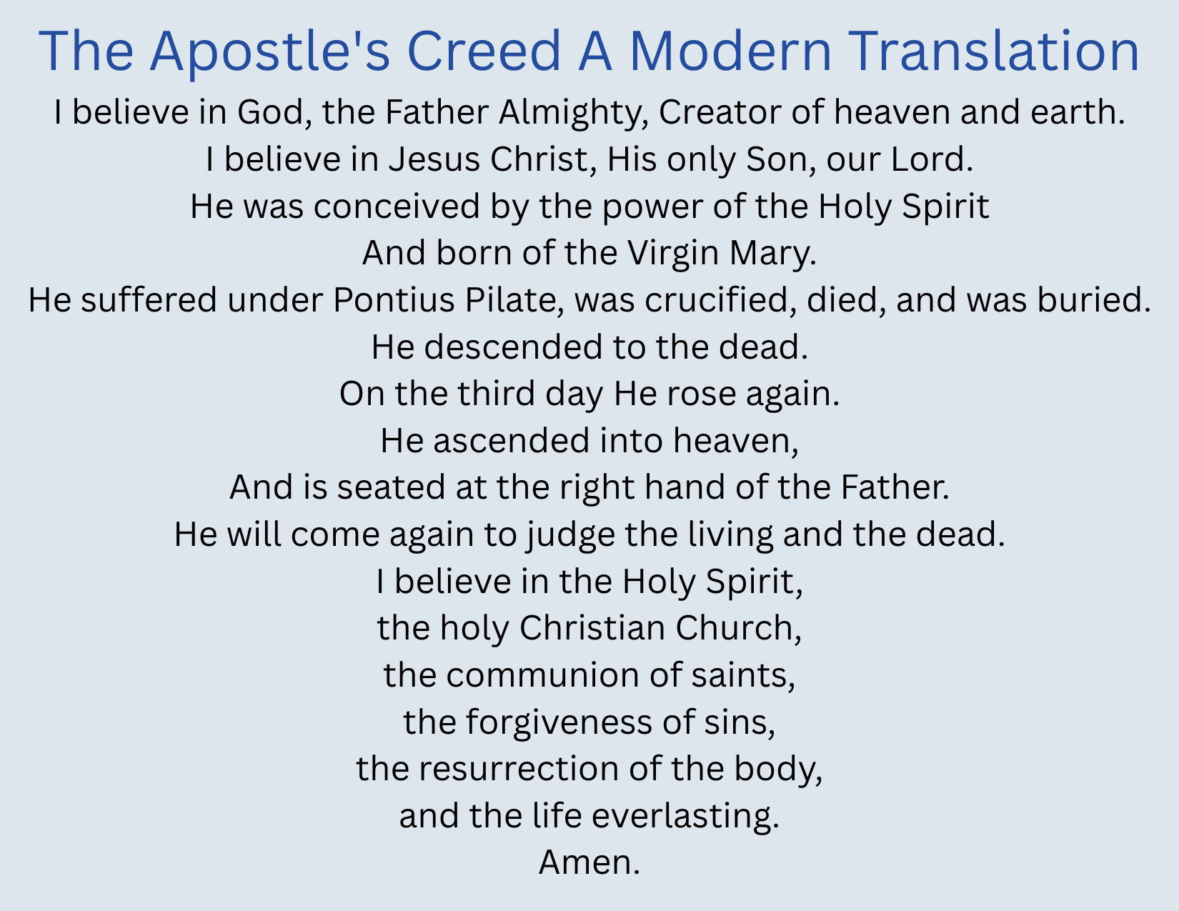 Love INC is a ministry of Christian churches. We use The Apostle’s Creed as our Statement of Faith to identify unity in Christ, and all of our volunteers are in agreement with it.